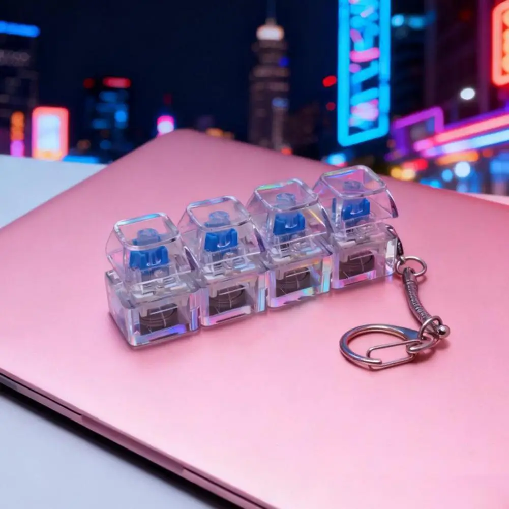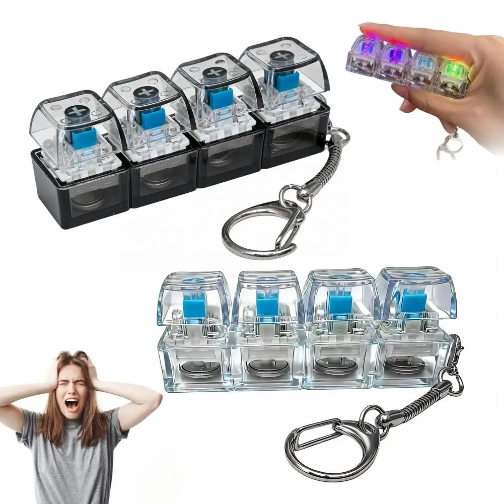 1/2Pcs 4-מקשים לקשקש מקלדת צעצוע עם אור שקוף כובע מקלדת אצבע Clicker Keychain שחרור לחץ כפתור חושי צעצוע